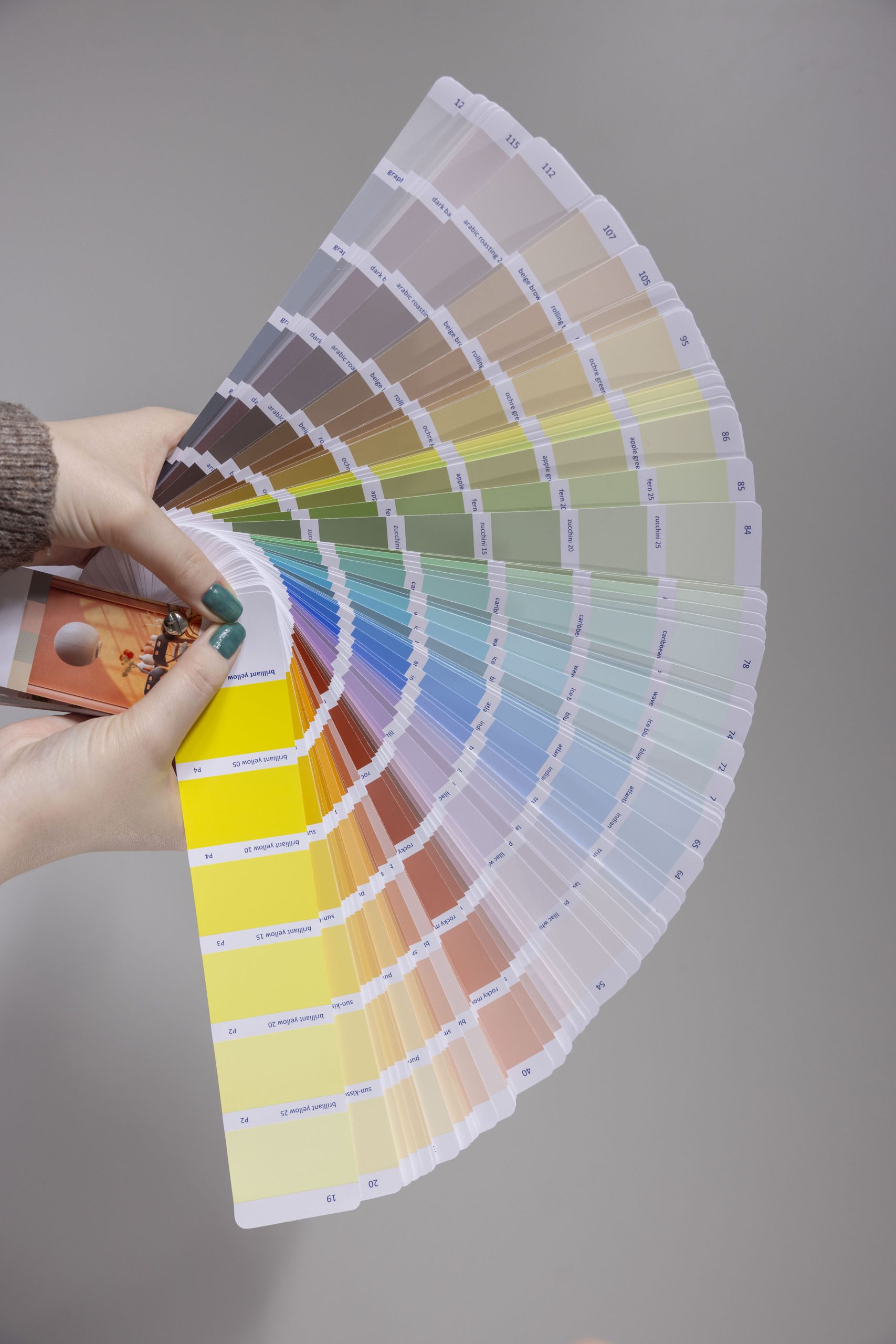 Umfangreicher, hochwertiger Farbfächer mit Originalaufstrichen