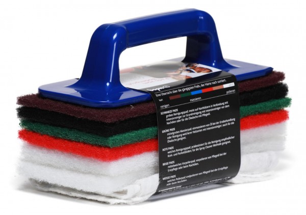 Allround-Padset mit Normalpads und praktischem Handpadhalter.