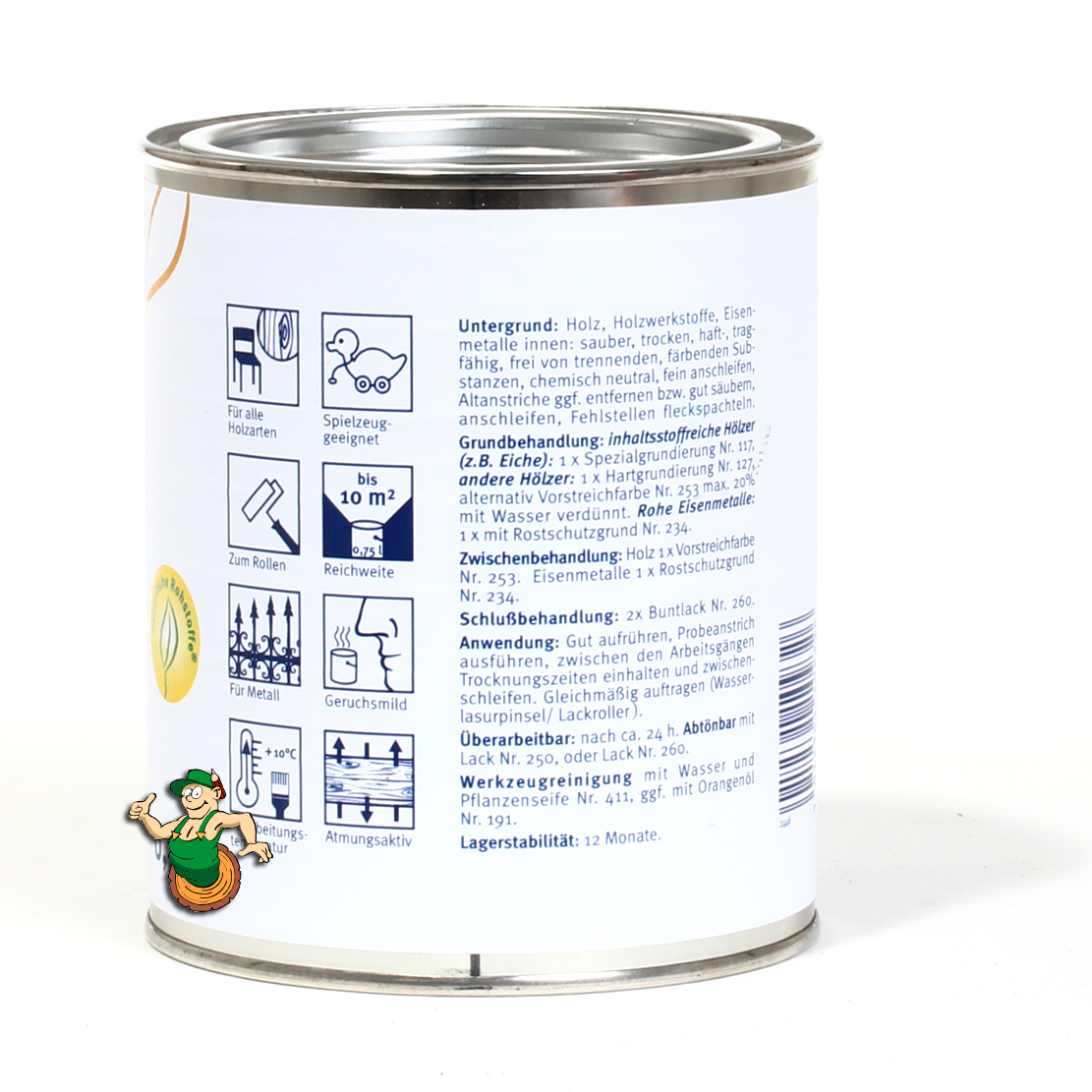 Ein seidenmatter, lösemittelfreier Lack für Möbel und Metallanstriche, Holzobjekte oder -werkstoffe im Innenbereich. Auf Speichel- und Schweißechtheit geprüft sowie vom AgBB geprüft und empfohlen. Der Lack ist ausgesprochen schnelltrocknend und nahezu geruchsfrei. Bei inhaltsstoffreichen Hölzern empfehlen wir eine Vorbehandlung mit Spezialgrundierung Nr. 117, bei anderen Hölzern Hartgrundierung Nr. 127.