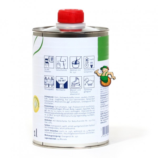 Abhängig vom Untergrundmaterial und der gewünschten Oberflächenbelastbarkeit sind alternativ auch Folgebehandlungen mit folgenden Produkten möglich: Hartwachs Nr. 171 oder Möbelbalsam Nr. 173.