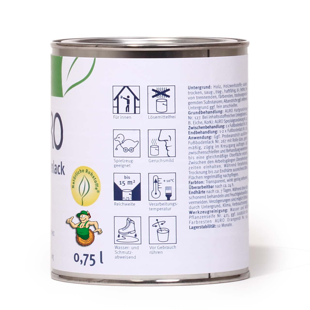 Lösemittelfreier, stark strapazierfähiger und schmutzabweisender Lack für Holzfußböden aus ökologischen Rohstoffen.