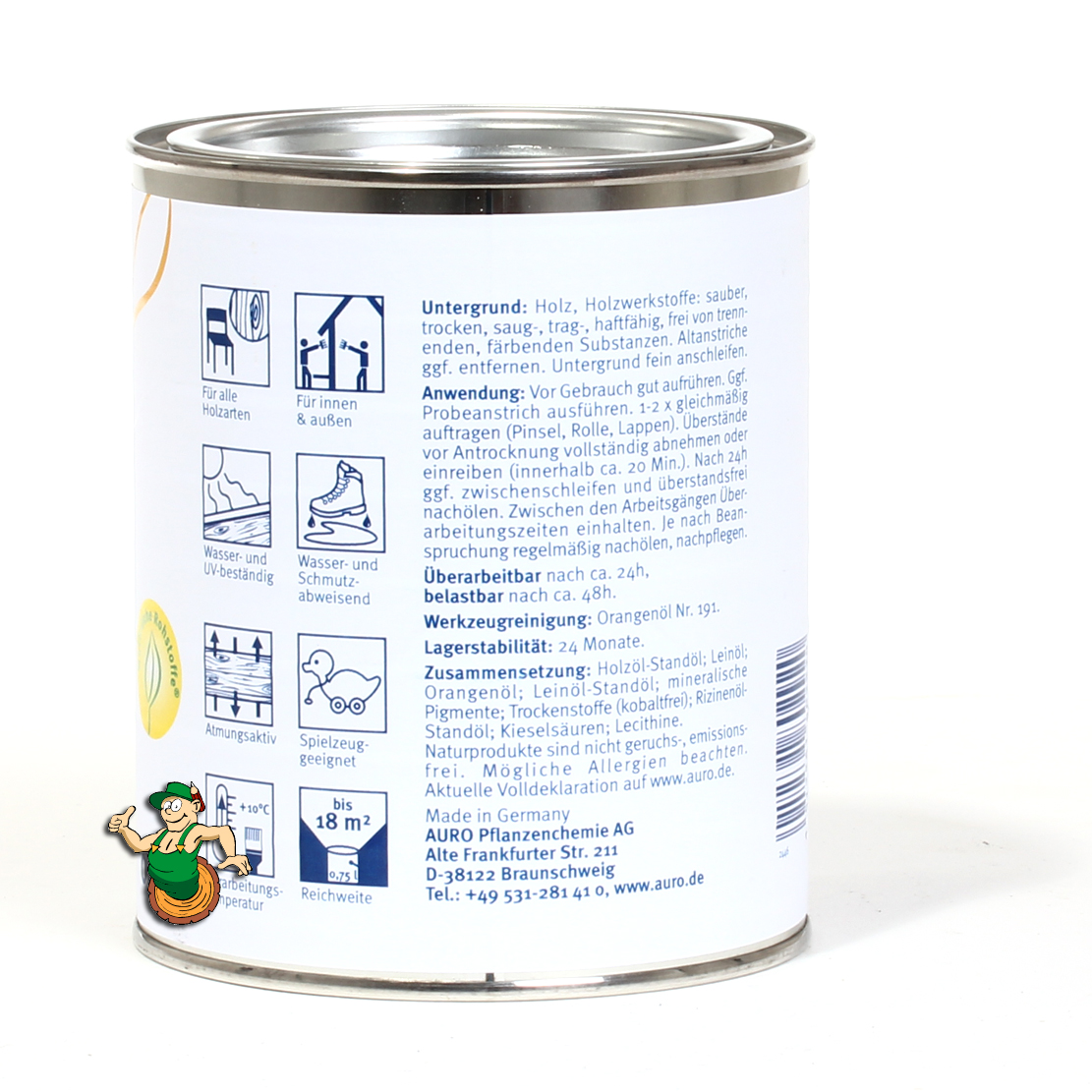 Ölgetränkte Tücher können sich selbst entzünden. Tücher mit Wasser tränken und im Freien glatt ausgebreitet trocknen lassen. Getrocknete Lappen können dann im Hausmüll entsorgt oder je nach Gebrauch wieder verwendet werden. Pinsel am besten mit Verdünnung Nr. 191 reinigen und mit Pflanzenseife Nr. 411 und Wasser auswaschen. Es hat sich bewährt, die Werkzeuge ( Pinsel, Flächenstreicher etc.) mit Auro Pflanzenseife einzumassieren und sie bis zum nächsten Einsatz so zu lagern. Vor dem nächsten Gebrauch sind die Werkzeuge gründlich auszuwaschen.