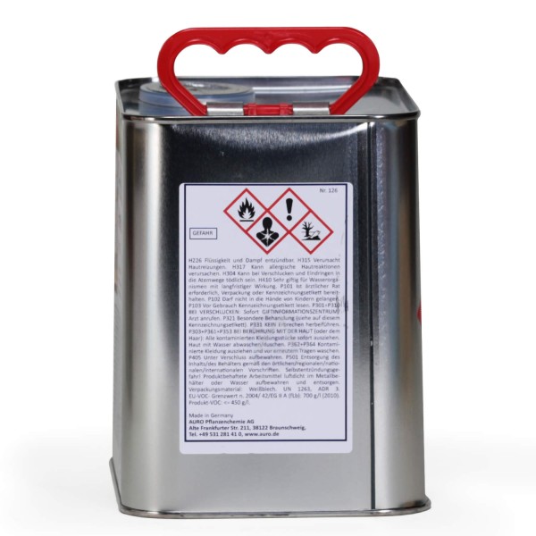 Einfach aufzutragendes, schützendes Öl für unbehandelte oder vorgeölte Holzmöbel und Fußböden. Verstärkt den natürlichen Holzfarbton. Einmalöl ist besonders einfach anzuwenden und trotzdem besonders ökologisch, sowie lösemittelfrei. Einmalöl enthält keine Holzschutzmittel. Technische Eigenschaften: Geprüft gemäß DIN EN 71 Teil 3‚ Sicherheit von Spielzeug Verstärkt die Abriebbeständigkeit des Untergrundes Verringert die Verschmutzungsanfälligkeit Sehr gute Langzeitbeständigkeit Verarbeitung Beachten Sie bitte immer die Hinweise im Technischen Merkblatt! AURO Einmalöl darf nicht in Materialfugen, Vertiefungen o.ä. fließen, da die Trocknung in diesen Bereichen erheblich verzögert wird. Deshalb bitte das Produkt gleichmäßig durch Streichen oder Rollen auftragen und nicht auf der Oberfläche ausgießen. Bei schlecht saugenden Untergründen kann zur Verbesserung des Eindringvermögens mit max. 20% Verdünnung Nr. 191 verdünnt werden. Bei stark saugenden Untergründen (bzw. Stellen) nötigenfalls mehrmals nass in nass nachsättigen (bis zu 4x). Die Notwendigkeit dazu erkannt man daran, dass sich kurz nach dem Ölen matte, trocken wirkende Stellen zeigen. Überstände, überschüssiges, nicht eingedrungenes Öl muss unbedingt vor dem Antrocknen, spätestens nach 20 Minuten mit fusselfreien Lappen, beigen oder weißen Pads trockengerieben bzw. aufgenommen werden. Es darf kein Ölfilm zurückbleiben. Auf flächigen, planen Untergründen ist es hilfreich, die Überstände zur besseren Entfernung vorher mit einem (rostfreien) Spachtel oder Rakel zusammenzuziehen. Nachfolgebehandlungen sind erst nach Trocknung, frühestens nach ca. 24 Stunden möglich. Folgebehandlungen sind nicht zwingend erforderlich, sollen sie durchgeführt werden, die Oberfläche ggf. leicht zwischenschleifen (z.B. bei Möbeln 240er, bei Fußböden Schleifgitter 180er Körnung).Das unverdünnte Einmalöl dann nur noch sehr sparsam auftragen (z.B. mit einem Lappen). Entstandene Überstände wie vorher beschrieben sorgfältig abnehmen. Abhängig vom Untergrundmaterial und der gewünschten Oberflächenbelastbarkeit sind alternativ auch Folgebehandlungen mit folgenden Produkten möglich: Hartwachs Nr. 171 oder Möbelbalsam Nr. 173. Reinigung und Pflege:Mit handwarmem Wasser feucht wischen. Nur nichtabrasive Putzmaterialien verwenden (keine Aktiv- oder Mikrofasermaterialien). Je nach Verschmutzungsgrad und Anwendungszweck können zusätzlich verschiedene Reiniger verwendet werden (z.B. Fußboden-Reiniger Nr. 427, Lack- und Lasurreiniger Nr. 435). In der Unterhaltspflege wird je nach Endbeschichtung mit z.B. Fußbodenpflege Nr. 437,Bodenpflege-Emulsion Nr. 431oder Holzboden - Reinigung Pflege Nr. 661 gepflegt. Aufgefrischt wird je nach Endbeschichtung mit z.B. Pflegeöl Nr. 106 oder Pflegewachs Nr. 107. Auftragsverfahren Streichen, Rollen oder Spachteln Verbrauch Ca. 0,02 Liter/ m² bei schwach saugenden Holzarten (z.B. Eiche, Ahorn, Esche); ca. 0,04 Liter/ m² bei normal saugenden Holzarten (z.B. Buche, Fichte, Kiefer, Lärche, Birke) und OSB-Waren; 0,05 Liter/ m² bei stark saugenden Holzarten (z.B. Erle, Kirsche), furnierten oder wärmebehandelten Hölzern. Werkzeuge, Werkzeugreiniger & Zubehör Arbeitsgeräte sofort nach Gebrauch sorgfältig ausstreichen und vor Antrocknung und mit Verdünnung Nr. 191 auswaschen. Gründlich mit Wasser unter Zusatz von Pflanzenseife Nr. 411 nachwaschen.