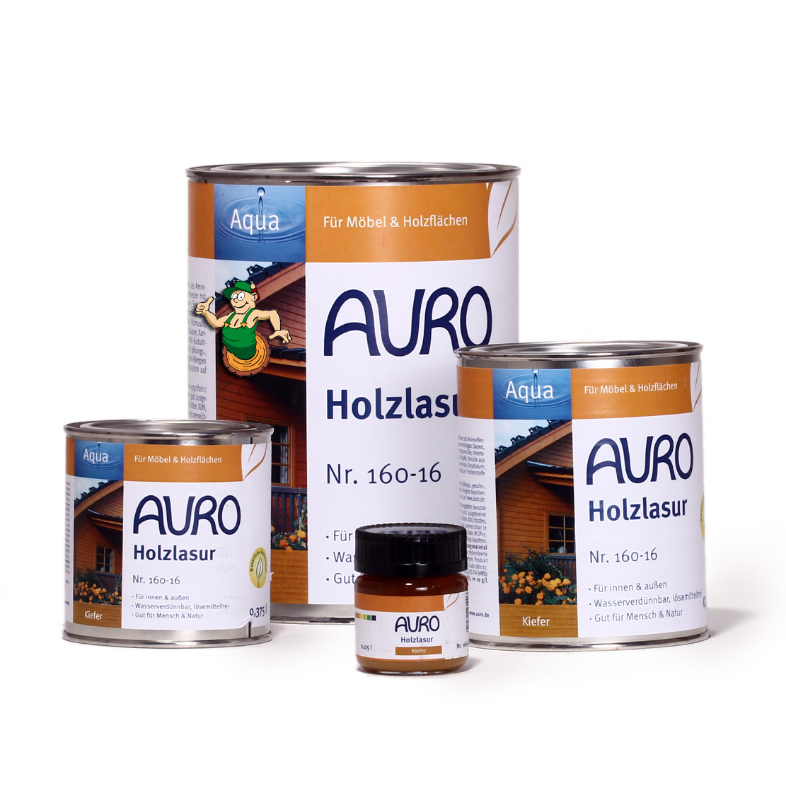 Wasserbasierte Holzlasur in 19 attraktiven Farbtönen, einfach zu verarbeiten, schnelltrockend und für Spielzeug geeignet. Unten den von Stiftung Warentest (Heft 5/06) untersuchten Holzlasuren war die AURO Holzlasur Aqua Nr. 160 als Testsieger übrigens die Nr.1.