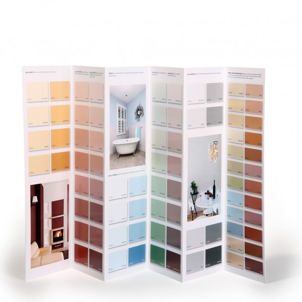 Die AURO Kalk-Buntfarben sind in verschiedenen Farbtönen erhältlich, z. B. Oxid-Rot, Grün oder Lichtblau.