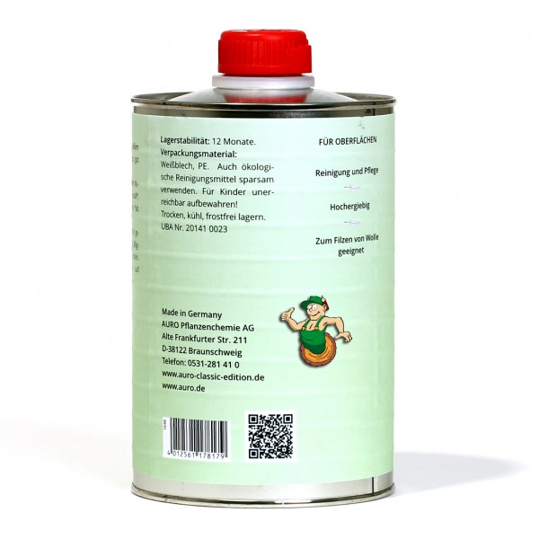 Die AURO Kokosseife Nr. 410 ist eine konzentrierte Pflanzenseife aus Kokosöl in Bioqualität, die besonders gründlich und schonend reinigt. Das Produkt eignet sich für alle wasserfesten Oberflächen, wie z. B. Stein Fliesen, Keramik, Ton, Kork und Holz. Die Seife ergibt eine schmutzabweisende Oberfläche und ist zudem hervorragend zum Auswaschen von Pinseln und zum Filzen von Wolle geeignet.