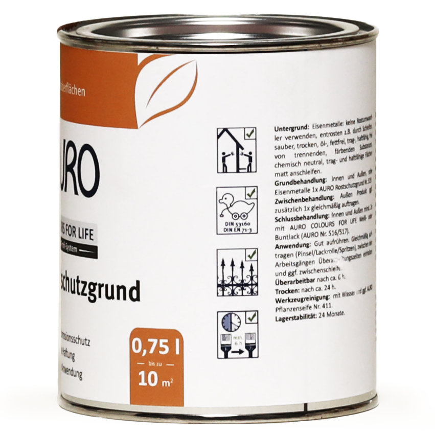 Ein sicherer Schutz vor Rost bzw. Korrosion. Eine schichtbildende Grundierung für Eisen und Stahl im Innen- und Außenbereich. Das Produkt ist wasserverdünnbar, lösemittel und titandioxidfrei. Anschließend mit Auro-Lack Nr. 516 oder 517 überstreichen.