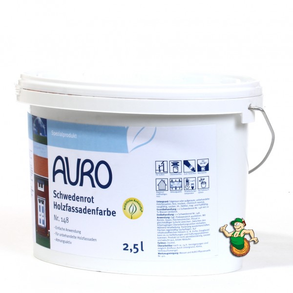 AURO Schwedenrot Holzfassadenfarbe Nr. 148 gibt mit Holz verkleideten Häusern den typischen Schwedenhaus-Look. Die oxidrote, lösemittelfreie Schlämm-Farbe eignet sich sowohl für unbehandelte als auch für bereits mit AURO Schwedenrot behandelte Holzfassaden z.B. an Wohn- und Gartenhäusern. Die Schwedenrot Holzfassadenfarbe blättert nicht ab, ist weitgehend lichtbeständig und kann ohne großen Aufwand wieder überarbeitet werden. Die Holzfassade wird dazu einfach nur abgebürstet und wieder neu gestrichen. Perfekt wird der Schweden-Look, wenn Fenster- und Türrahmen mit Buntlack -glänzend- Nr. 250 Weißlack Aqua abgesetzt werden.