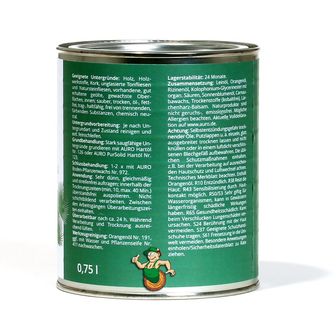 Mit dem Bodenpflanzenwachs Nr. 972 hat AURO einen hochwertigen, mit reinem Pflanzenwachs angereicherten Balsam entwickelt. Öle, Canaubawachs und Lärchenharz ergeben ein Bodenwachs mit hervorragender Beständigkeit und Qualität. Es ist für unbehandelt und vorgeölte Holzmöbel und -fußböden geeignet und ergibt nach dem Auspolieren eine schmutzabweisende Oberfläche, die leicht zu reinigen ist.