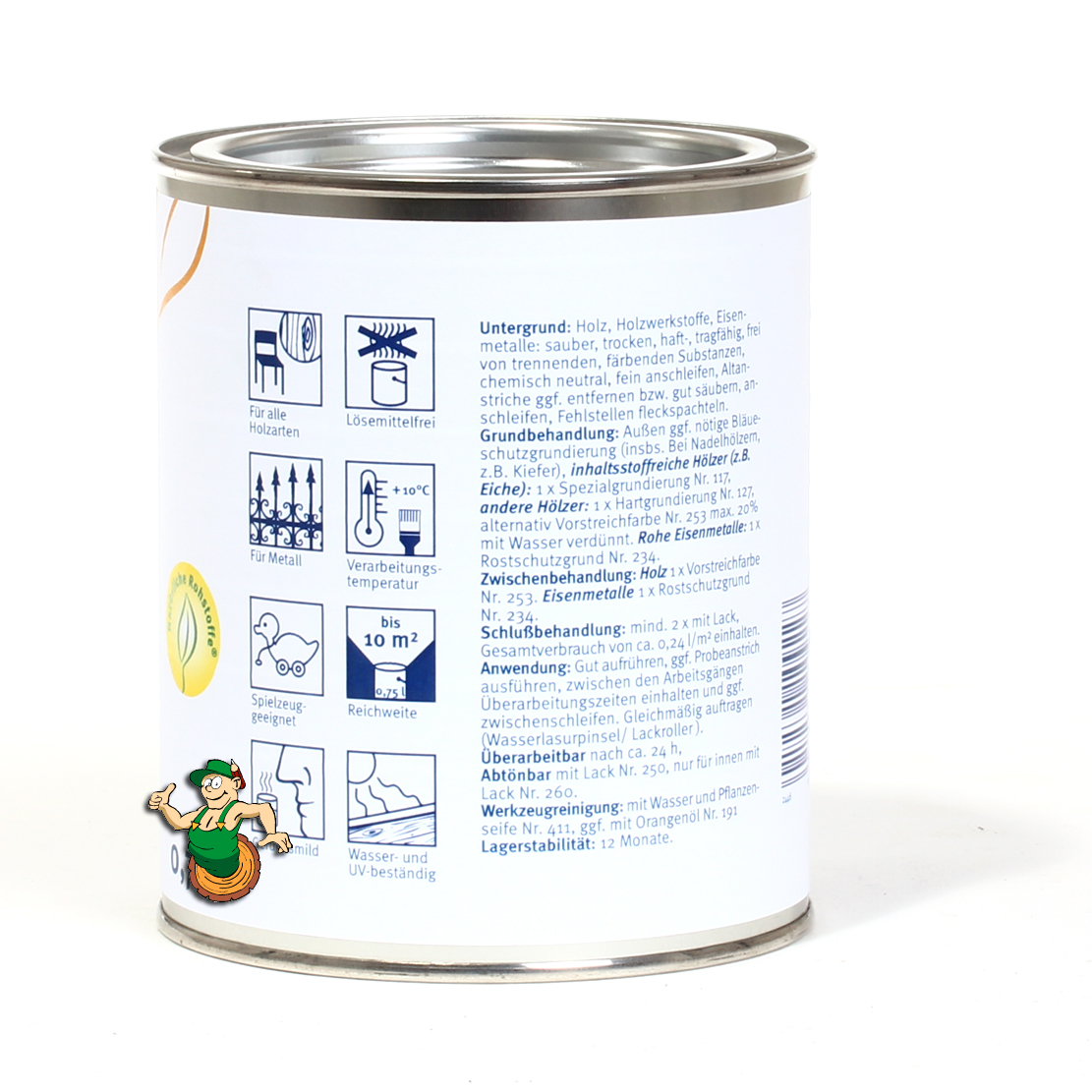 Hinweis: Die lackierte Oberfläche kann mit lauwarmem Wasser oder mit dem Lack- und Lasurreiniger Nr. 435 gereinigt werden. Verwenden Sie zur Reinigung keine Laugen oder stark scheuernde Reinigungsmittel.