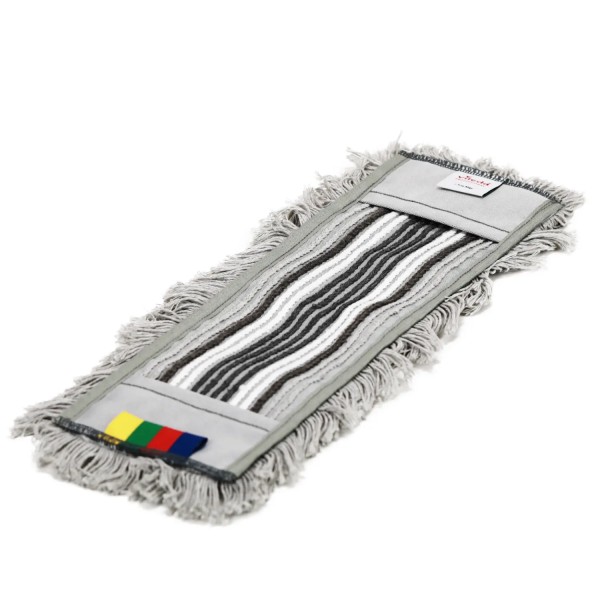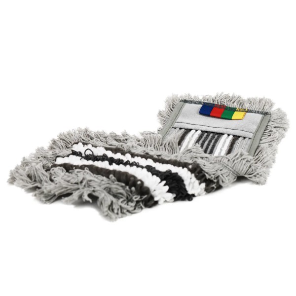 Der ideale, langlebige Bezug um stark verschmutzte Oberflächen, wie z.B. Fliesen- oder Steinböden zu reinigen. Dieser Mopp-Bezug hat eine hervorragende Reinigungsleistung, da sich die Garnschlingen des Bezugs an die Struktur des Untergrunds anpassen und die Fransen lose Schmutzpartikel sammeln und entfernen. Der Bezug hat drei Zonen: weiße Microfaser - hohe Reinigungsleistung / graue Zone - niedrige Reibung / beige Zone - hohe Saugfähigkeit.