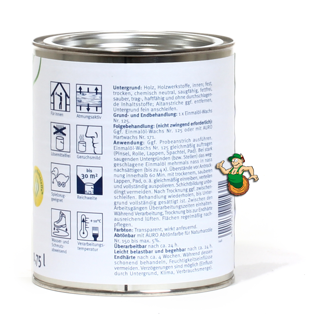 Transparent, wirkt anfeuernd, leicht honigtönend. Abtönbar mit AURO Abtönfarbe für Naturharzöle Nr. 150 wie der Abtönfarbe für Naturharzöle Nr. 150 Ultramarin-Blaubis max. 5 %. Wirkt auf den verschiedenen Hölzern unterschiedlich, deshalb Probeanstrich ausführen.