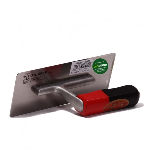 Die Federstahlkelle ist härter als eine Edelstahlkelle und hat dadurch einen geringeren Metallabrieb. Mit dieser Kelle können Sie praktisch Stein bügeln. Besonders geeignet für Kalkputze. Mit flexiblen Blatt und gerundeten Ecken.