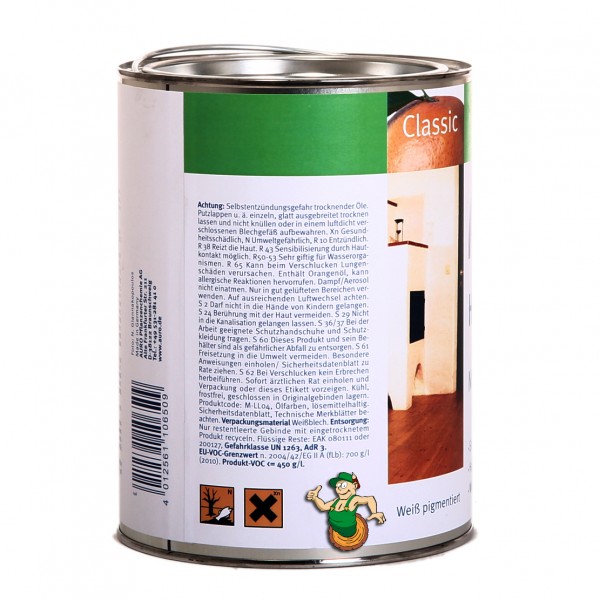 Ein Hartöl für die Alleinbehandlung normal beanspruchter Flächen aus Holz oder Kork im Innenbereich. Auch zur Grundierung von saugfähigen Flächen vor Öl- und Wachsbehandlungen geeignet. Ergibt eine aufgehellte, weiß lasierende Oberfläche.