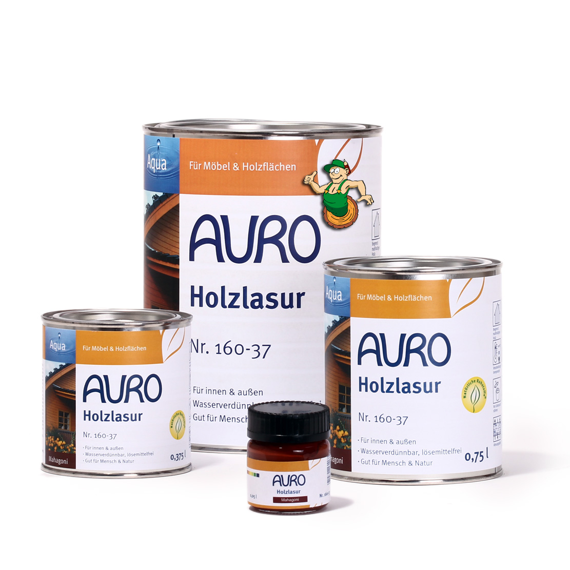 Wasserbasierte Holzlasur in 19 attraktiven Farbtönen, einfach zu verarbeiten, schnelltrockend und für Spielzeug geeignet. Unten den von Stiftung Warentest (Heft 5/06) untersuchten Holzlasuren war die AURO Holzlasur Aqua Nr. 160 als Testsieger übrigens die Nr.1.