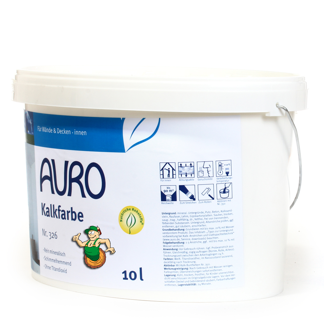 AURO Kalkfarbe 326 ist eine einfach zu verarbeitende, schimmelhemmende, diffusionsoffene weiße Kalkfarbe mit einer guten Deckkraft für den Innenbereich.