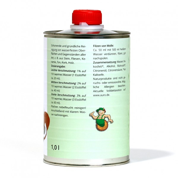 Die AURO Kokosseife Nr. 410 ist eine konzentrierte Pflanzenseife aus Kokosöl in Bioqualität, die besonders gründlich und schonend reinigt. Das Produkt eignet sich für alle wasserfesten Oberflächen, wie z. B. Stein Fliesen, Keramik, Ton, Kork und Holz. Die Seife ergibt eine schmutzabweisende Oberfläche und ist zudem hervorragend zum Auswaschen von Pinseln und zum Filzen von Wolle geeignet.