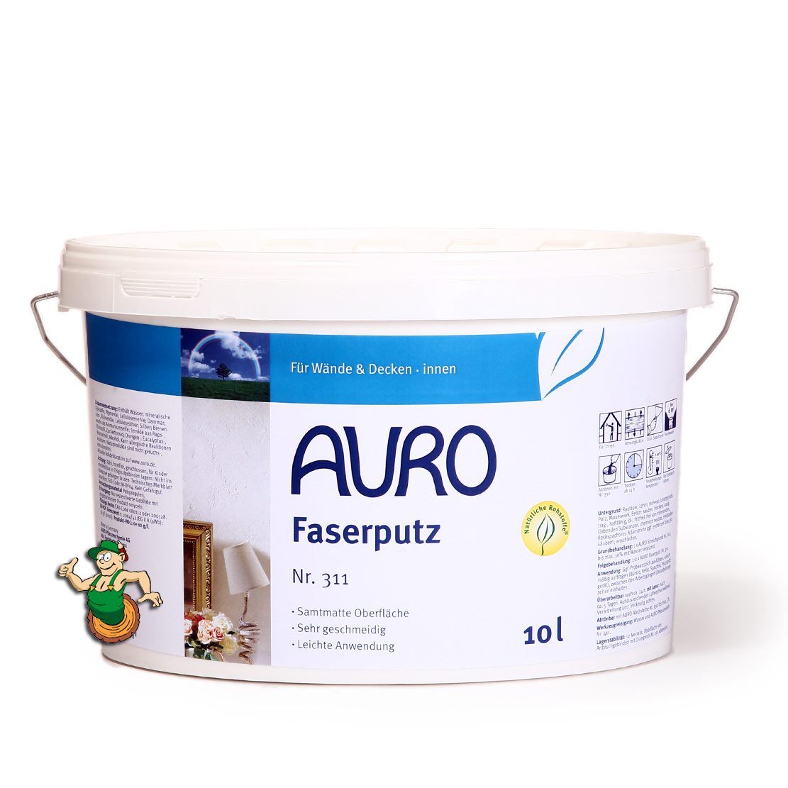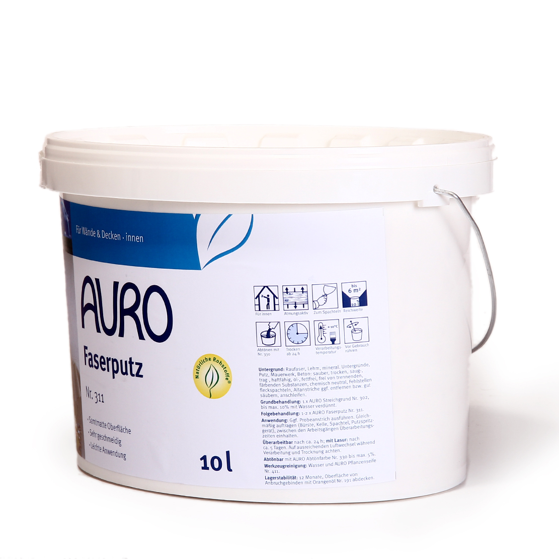 Der Faserputz heißt jetzt Lehm-Dekorputz. Weißer Dekorputz für den Innenbereich. Eine strukturgebende Putzbeschichtung mit feiner Faserstruktur, die gespachtelt oder mit Quast gestrichen, glattgezogen oder wellenförmig strukturiert werden kann. In den feuchten Putz können Muscheln, Gräser etc. eingedrückt werden. Der Putz ist abtönbar mit AURO Voll- und Abtönfarbe Nr. 330 (max. 5 % für Pastelltöne) oder lasierbar mit AURO Wand- und Lasurfarben Nr. 360 bzw. AURO Wandlasur-Wachsen Nr. 370.