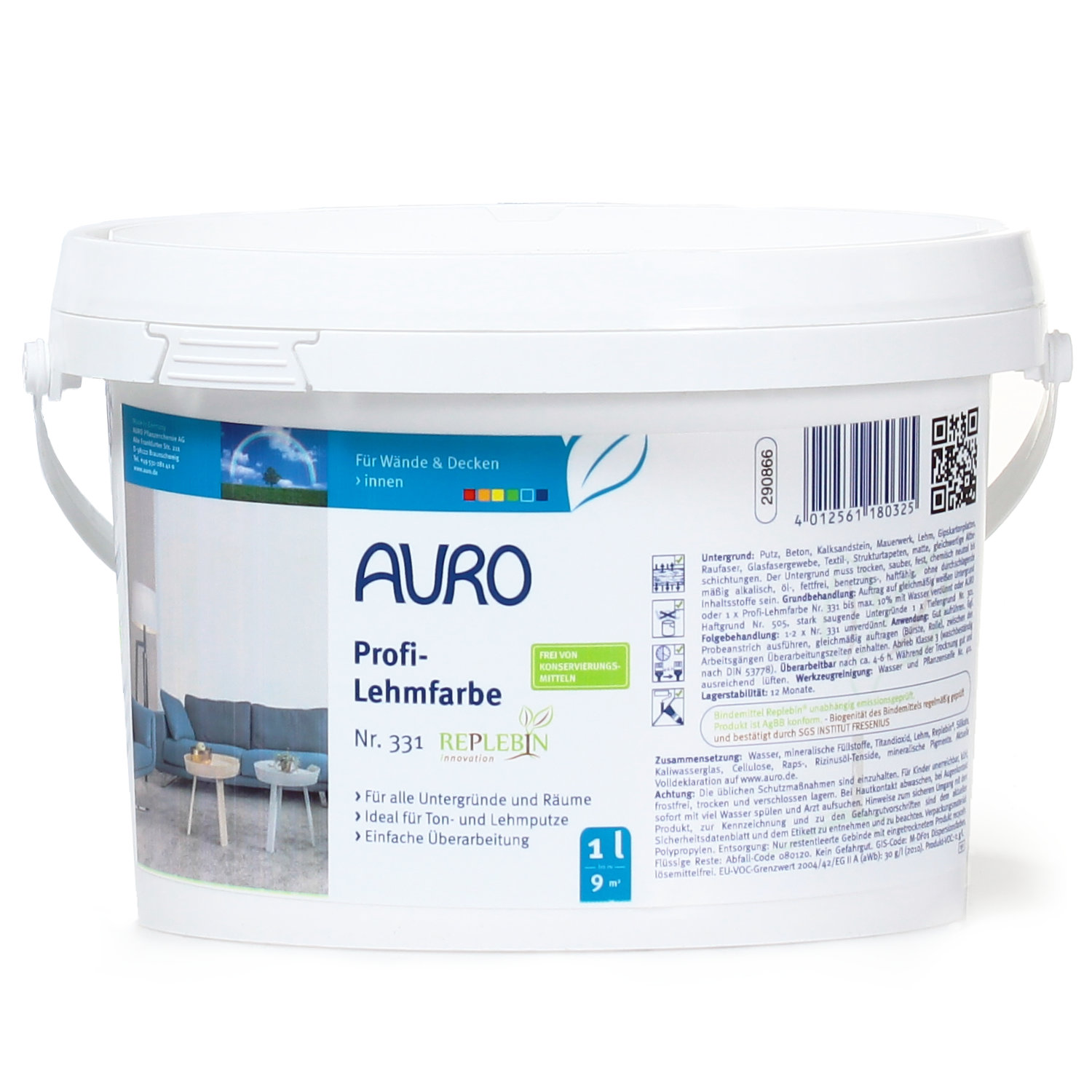 Die AURO Lehmfarbe Nr. 331 ist frei von jeglichen Konservierungsmitteln. Geeignet für alle mineralischen und organischen Untergründe im Innenbereich, sogar in Bad und Küche, da spritzwasserresistent. Die cremeweiße Farbe ist diffusionsoffen, feuchtigkeitsregulierend und atmungsaktiv und unterstützt so ein gesundes Raumklima. Die Lehmfarbe erzeugt eine glatte Oberfläche, da der eingesetzte Lehm weder körnig noch sandig ist.