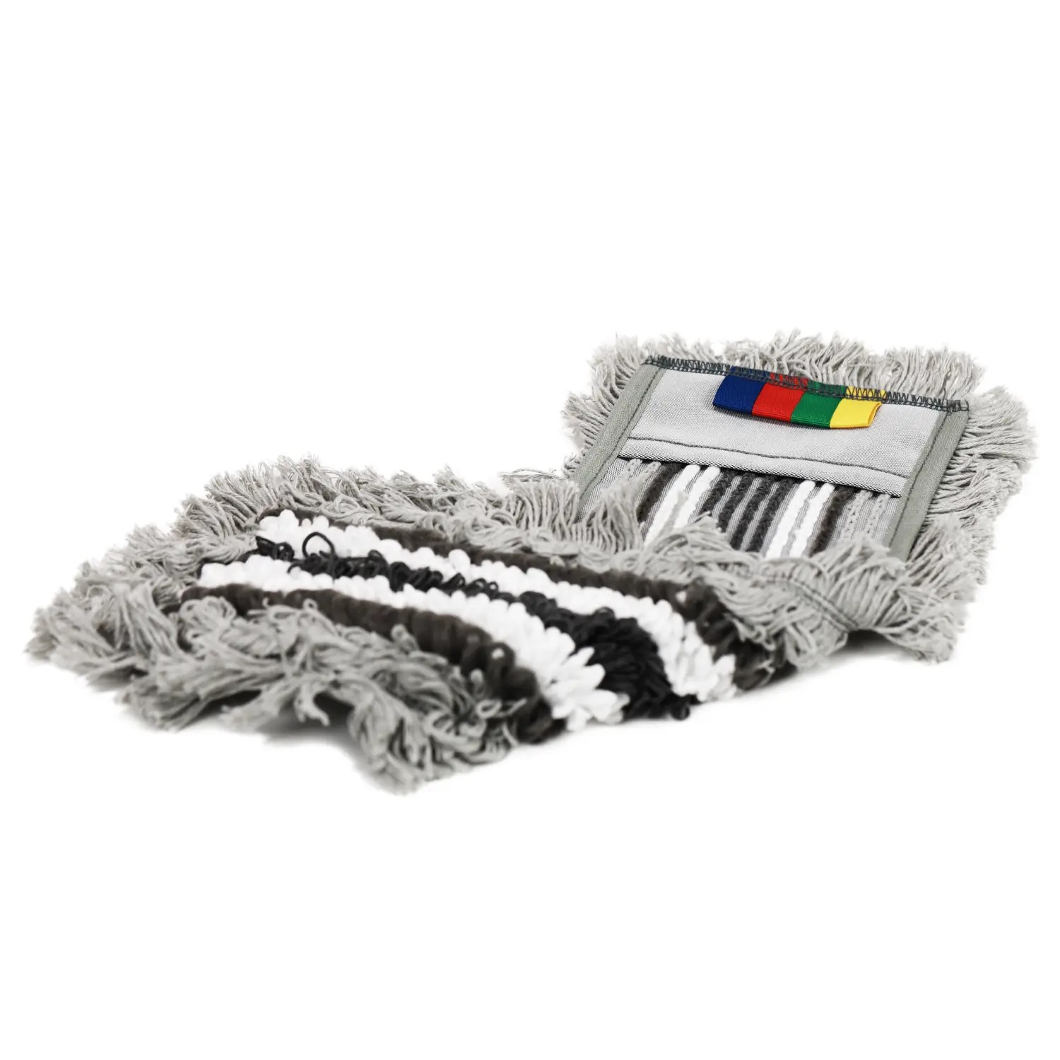 Der ideale, langlebige Bezug um stark verschmutzte Oberflächen, wie z.B. Fliesen- oder Steinböden zu reinigen. Dieser Mopp-Bezug hat eine hervorragende Reinigungsleistung, da sich die Garnschlingen des Bezugs an die Struktur des Untergrunds anpassen und die Fransen lose Schmutzpartikel sammeln und entfernen. Der Bezug hat drei Zonen: weiße Microfaser - hohe Reinigungsleistung / graue Zone - niedrige Reibung / beige Zone - hohe Saugfähigkeit.