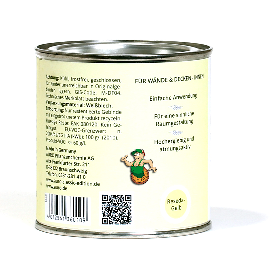 Kurzübersicht Konsequent ökologische Rohstoffauswahl Offenporig (sd-Wert < 0,015 m) Geringe Tropf- und Spritzneigung Sehr emissionsarm (AgBB-Bewertungsschema) Angaben nach DIN EN 13300, abhängig von Verbrauch, Untergrund, Auftragsverfahren Allgemeine Informationen Die Wandfarben-Reihe COLOURS FOR LIFE erweitert die Lehmfarben-Palette von AURO um kräftige Violett-, Blau-, Türkis-, Orange- und Gelbtöne. Die Farbmischungen können einfach mit dem Farbmischsystem und Farbmischmaschine hergestellt werden. Für rote Farbtöne werden weiterhin die Rotpigmente Englischrot und Persischrot verwendet. Die Farbe ist emissionsfrei und ökologisch, da sie mit konsequent ökologischen Farbpasten abgetönt wird. Das biogene Bindemittel Replebin® aus Pflanzenstärke und mineralische Pigmente ermöglichen kräftige und bunte Nuancen ohne synthetische Pigmente. Bitte beachten: Alle Bestellungen werden frisch abgetönt. Lieferzeit etwas länger, Widerruf ausgeschlossen. Farbtondarstellung auf Monitor kann abweichen und ist nicht verbindlich. Farbton Farbtonauswahl über Farbfächer COLOURS FOR LIFE, über 700 Farbtöne. Vor Anstrich unbedingt Probeanstrich durchführen, Unterschiede durch Untergrund oder Verarbeitung sind keine Reklamation. Maschinell bedingte geringe Farbabweichungen möglich. Inhaltsstoffe Wasser; Lehm; Mineralische Füllstoffe; Replebin®; Titandioxid; mineralische Pigmente; Cellulose; Raps-, Rizinusöl-Tenside; Salmiakgeist; Natriumpyrithion; Benzisothiazolinon. Mögliche Allergien beachten. Volldeklaration: www.auro.de Verarbeitung Trockenzeit bei 20 °C / 65% rel. Luftfeuchte: überarbeitbar nach 4–6 Stunden, durchgetrocknet nach 24 Stunden. Niedrige Temperaturen oder hohe Luftfeuchtigkeit verlängern die Trockenzeit. Für optimale Ergebnisse auf ausreichenden Luftwechsel achten, gut querlüften. Auftragsverfahren Streichen oder Rollen, kurzflorige Wandfarbenrolle empfohlen für gleichmäßiges Anstrichbild. Airless Spritzen getestet mit Wagner MF 250, Spritzdruck 200 bar, Düsengröße 419 (Trade Tip 3), Pistole AG 08. Verbrauch 0,11–0,14 l/m² pro Anstrich, abhängig von Untergrund, Verarbeitungsart, Oberflächengüte. Genaue Verbrauchswerte durch Probeanstrich ermitteln.